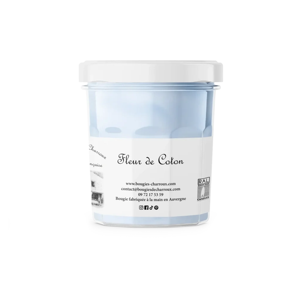 La bougie parfumée Fleur de Coton Les Bougies de Charroux est notre best-seller depuis des années et des années ! Elle masque toutes les odeurs, pour une maison saine au parfum doux. Grâce à sa parfaite senteur de coton, cette fibre naturelle embaumera toutes les pièces de la maison sans difficulté. Aucune mauvaise odeur ne lui résiste !